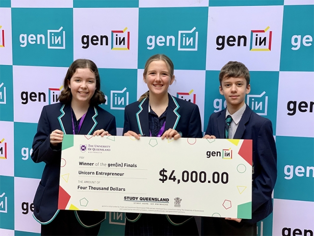 Three Innovation Club students in Year 9 at Matthew Flinders Anglican College have won the gen[in] Student Innovation Challenge at the University of Queensland.